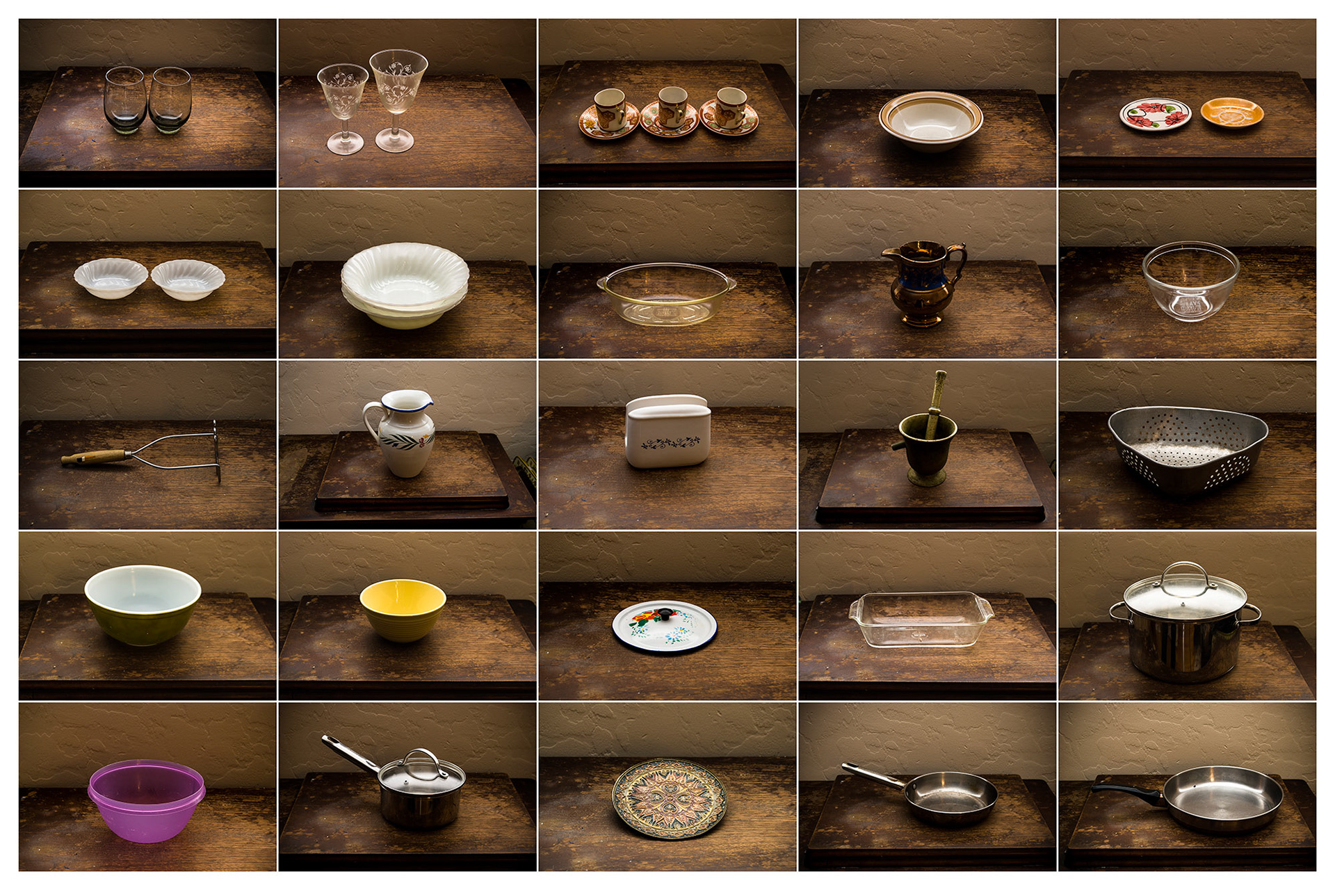 Around the time my son was born, I moved my mother from the family home in Fresno, CA to a small apartment near my family in the East Bay. It was rather traumatic for all involved. For me, the dissolution of the family home represented a lost connection to my own history and sense of self. A few years later in early 2009, I had to move her, by then 90 years old, to a board and care facility. I resolved that the inevitable liquidation of most of her (our) remaining possessions could not pass without documentation. In the few days I had in which to pack up and clear out her life, I photographed almost every single item as it went into a storage container or out to the curb.
